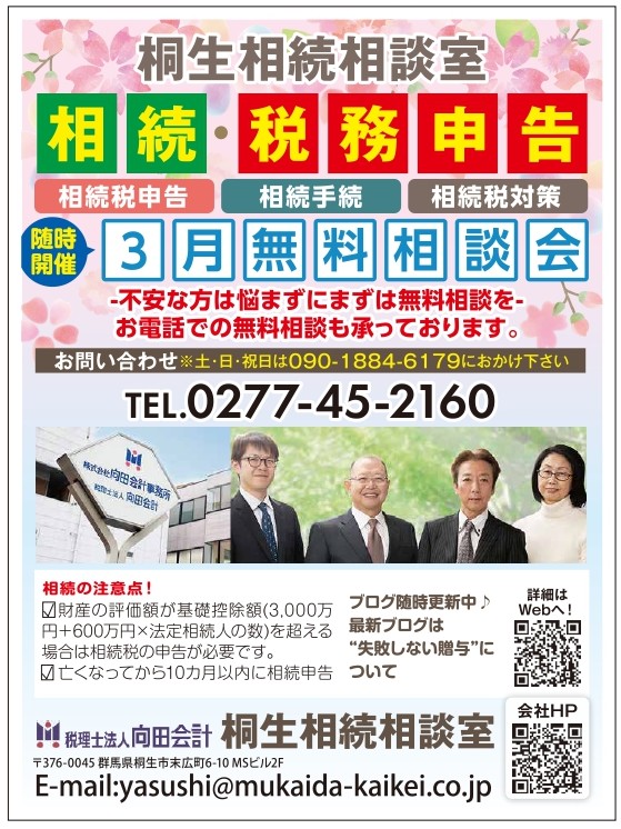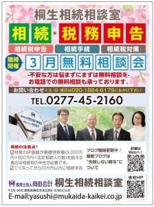桐生みどり、太田、伊勢崎、前橋フリモ3月号に相続・税務申告無料相談会の紹介を掲載させていただきました。